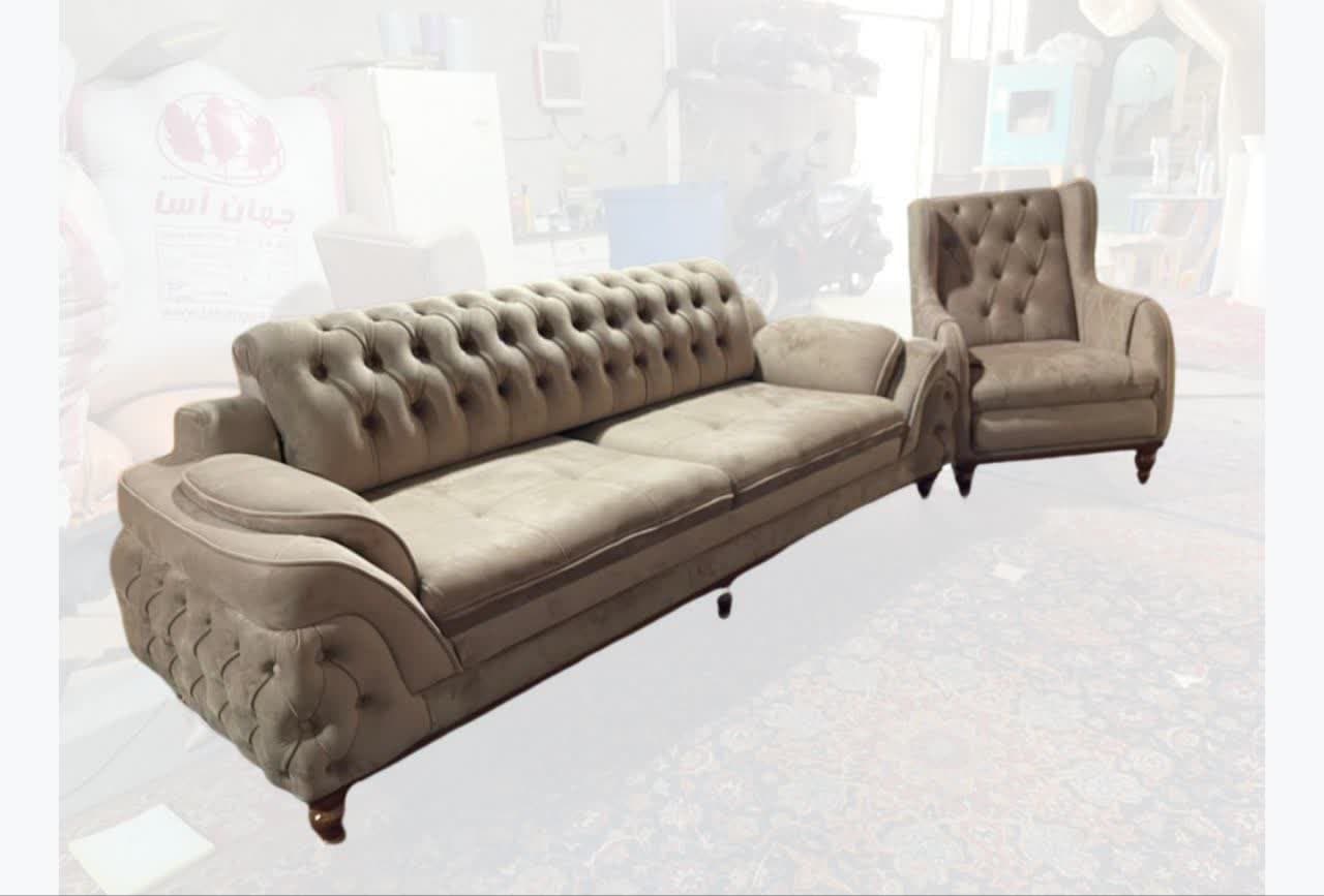 ست ۷ نفره چستر مکانیزه پشت گردون چوب روس پارچه خارجی اسفنج۳۵ کیلو شرکتی دارای ضمانت